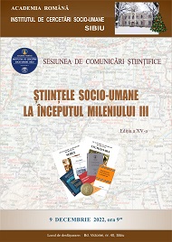Institutul de Cercetări Socio-Umane Sibiu organizează în 9 decembrie 2022, începând de la ora 9:00, sesiunea anuală de comunicări, aflată la a XV-a ediţie sub genericul Ştiinţele socio-umane la începutul mileniului al III-lea. La sesiune vor fi prezentate cele mai noi rezultate ale investigaţiilor ştiinţifice întreprinse de cercetătorii Institutului, dar şi de colege / colegi din Sibiu şi din alte oraşe.